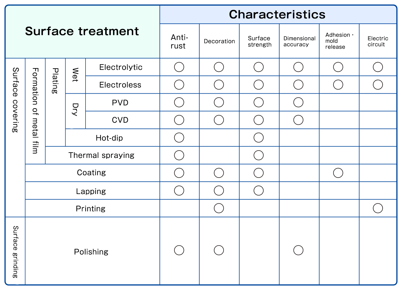 The various objects around us will have undergone some kind of surface treatment. Plating is one of the main methods of such surface treatment. The video and diagram below provide a broad summary of the types and characteristics of different surface treatments.