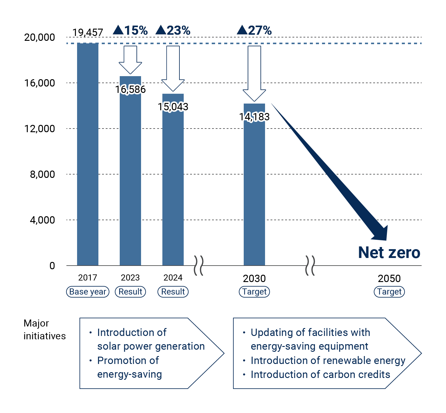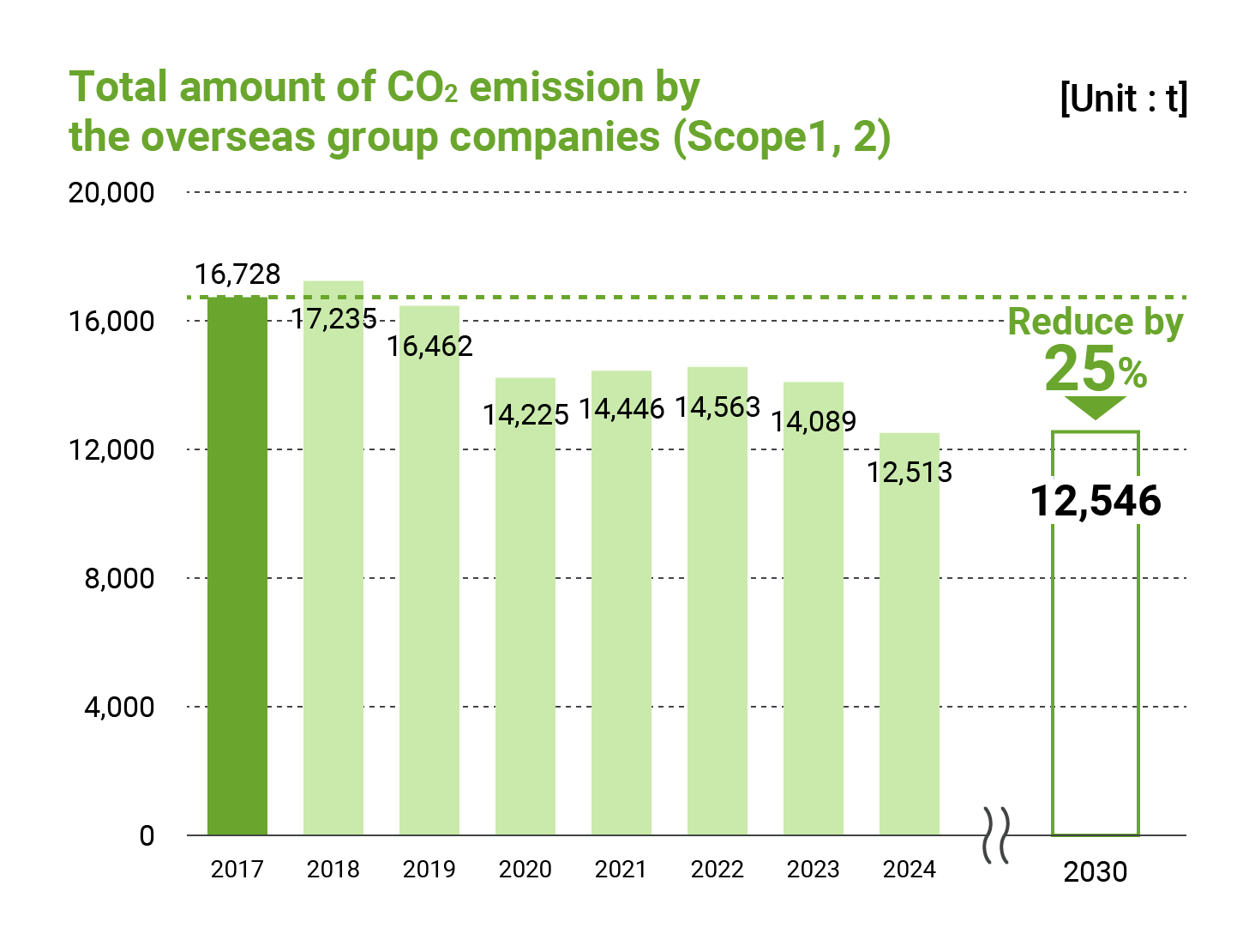 We have set "reduction of CO2 emissions" as one of our environmental goals and aim to reduce the Group’s CO2 emissions by 27% by 2030 (compared to 2017) with a 40% reduction in Japan and a 25% reduction overseas.